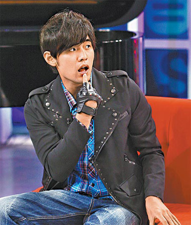 在新專輯封面化身奇幻戰(zhàn)士的周杰倫,昨錄像時(shí)露出逗趣表情。