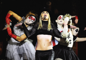 在結(jié)束了日前的歐洲宣傳行之后,布蘭妮于本周二回到“主場(chǎng)”紐約,亮相《早安美國(guó)》電視節(jié)目。為了給同日發(fā)行的新專輯造勢(shì),布蘭妮在節(jié)目中演唱了新專輯的主打歌《花心男》和《馬戲團(tuán)》,除了“小丑”裝扮的伴舞演員,現(xiàn)場(chǎng)還亮出大型火環(huán),噱頭十足。
