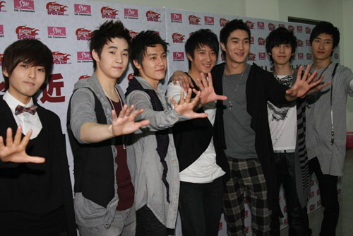 站在臺(tái)上的SJ-M7個(gè)成員,不時(shí)的互相交頭接耳,韓庚、始源的竊竊私語(yǔ),東海、Henry的勾肩搭背,都成了令現(xiàn)場(chǎng)粉絲尖叫聲此起彼伏的導(dǎo)火線。