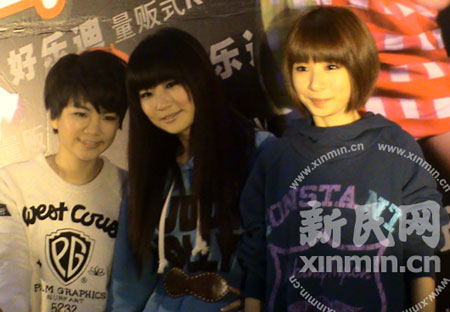 下午4時20分,S.H.E到達(dá)簽售現(xiàn)場。久未來內(nèi)地的Selina明顯發(fā)胖,臉也圓潤了很多。當(dāng)被問及是否因?yàn)槭聵I(yè)順利而心寬體胖時,Selina否認(rèn)稱,可能是自己的發(fā)型的緣故吧。