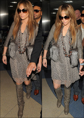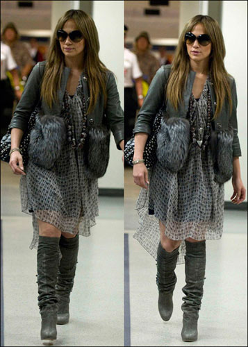詹妮弗·洛佩茲實(shí)在是太漂亮了!結(jié)束了自己的日本宣傳活動,匆匆回國的詹妮弗·洛佩茲在機(jī)場大大的高貴了一把,灰白黑色的雪紡紗連身長裙浪漫飄逸,外面為了保暖配了皮質(zhì)外套,但是袖口處的毛毛設(shè)計(jì)極致奢華高貴,大釘子書包混搭效果明顯,大配飾項(xiàng)鏈真是好看~~小編覺得喜歡這樣浪漫奢華的MM們一定要學(xué)習(xí)學(xué)習(xí),保證是回頭率300%。