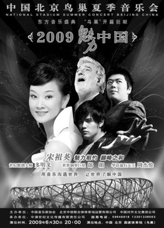 繼悉尼歌劇院獨(dú)唱音樂(lè)會(huì)、維也納金色大廳獨(dú)唱音樂(lè)會(huì)、美國(guó)獨(dú)唱音樂(lè)會(huì)后,6月30日,宋祖英將攜手多明戈、郎朗、周杰倫在國(guó)家體育場(chǎng)“鳥(niǎo)巢”一同演繹《魅力·中國(guó)》。