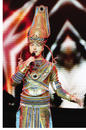 昨晚,第三度來(lái)滬會(huì)見老朋友的維塔斯,顯然想用更多新招數(shù)來(lái)回饋觀眾。他想證明自己的“跨度”不僅體現(xiàn)在海豚音的聲調(diào)上,還能駕馭多種風(fēng)格的歌曲和舞臺(tái)表演。不過(guò),無(wú)論是俄文版的中國(guó)歌曲《大海啊,母親》,還是用中文唱《青藏高原》,上海大舞臺(tái)的觀眾最熱烈的掌聲還是給了維塔斯的“招牌菜”——《星星》和《歌劇2》。
