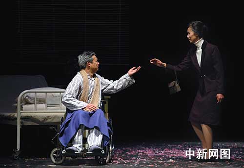 最后一幕的“壓軸場”是分別四十多年的云之凡和江濱柳在病房相見,黃磊和孫莉默契細(xì)膩的表演令全場觀眾為之動(dòng)容,他們將看似平淡的兩位老年人之間的對(duì)話演繹得波瀾起伏,觀眾完全可以感受到云之凡在平靜外表下內(nèi)心的情緒起伏變化以及幾十年來的情感積累和煎熬。當(dāng)孫莉與黃磊在臨別前最后一次握手時(shí),劇場里的啜泣聲幾乎比平時(shí)大了一倍多,觀眾真正體會(huì)到當(dāng)年《紐約僑報(bào)》評(píng)價(jià)該劇“最后一幕時(shí)劇場的墻壁幾乎要溶化掉”的感覺。