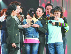 晚會現(xiàn)場請來了三名來自北川中學(xué)的高三學(xué)生,他們哭著講述了自己的地震經(jīng)歷,“叔叔阿姨你們知道我們看到了什么嗎?5樓高的學(xué)校一瞬間就變成了二三米的土堆,里面還有一些血肉模糊的手和腳。如果我的父母升入天堂,我會自己重建家園。地震都過去了,我們沒有死,我們也一定會去高考,我們還有希望!”孩子們這番含淚的話讓無數(shù)人淚光閃閃。同時,晚會也向那些為保護學(xué)生而獻出自己寶貴生命的人民教師表達了最崇高的致意。而就在晚會現(xiàn)場,三名同學(xué)中的一名,曾經(jīng)被溫家寶總理拉著手慰問的“孤兒”白琳找到了她的父親。就在節(jié)目剛剛播出了她的“孤兒”經(jīng)歷之后不久,白巖松馬上在現(xiàn)場告訴了大家一個好消息,白琳的父親通過晚會的直播看到了女兒,聯(lián)系到了晚會劇組,這也是讓現(xiàn)場露出最多笑容的一個消息,在現(xiàn)場剛剛跟家人取得聯(lián)系的白琳一邊哭著一邊對父親說,“爸爸,你現(xiàn)在沒事了,一定要當(dāng)志愿者,去幫助更多的人!