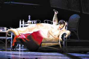 對此,導演王延松表示,“鳥巢”并不新鮮,倒是由一端底處逐漸盤旋上升到另一端中高處的一長段樓梯形成的“腰線”比較特別,是一個原創(chuàng)。演出中,陳白露經常要在這段樓梯跑上跑下,為整部《日出》穿針引線。華麗場景與三等劇院的變換,也巧妙地利用了帷幔、燈光,用燈光下映襯在幔布上的演員的剪影與舞臺上演員的身影,相互呼應、巧妙相連。
