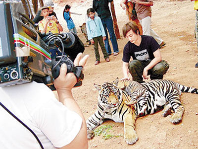 方力申日前到泰國(guó)老虎寺拍攝《向世界出發(fā)》第三輯,與張牙舞爪的大老虎并肩而行,他給老虎洗澡、喂奶。為安全起見,事前他已買高額保險(xiǎn)并打破傷風(fēng)針,以防萬一。