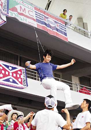 據臺灣“聯(lián)合報”報道,黃曉明拍百事廣告全力以赴,他會從運動場看臺飛躍而下,還跨越群眾頭上玩水上飄。黃曉明說:“有一個鏡頭是我從觀眾的頭上走過去,導演要我真的很用力踏到其中一些人的頭上,唉,真的很不好意思,因為有一個人被我弄傷了!