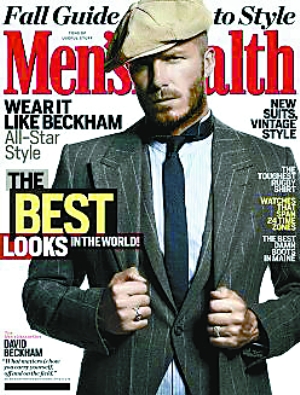 國際球星大衛(wèi)·貝克漢姆成為最新一期《男士健康》(Men’s Health)雜志的封面人物(見上圖),他為該雜志拍攝了兩組不同的封面,分別為紳士型和運(yùn)動型,并接受記者專訪,回答了四個問題。而不論是封面寫真還是回答記者的問題,這位33歲的萬人迷都散發(fā)著成熟男人的味道。
