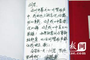 細(xì)心詢問病情,關(guān)心治療情況,三大導(dǎo)演在問候劉巖之后,不斷地勉勵(lì)這位著名的舞者增強(qiáng)與病魔作斗爭的信念。張藝謀還特別帶來了他在四張節(jié)目單和紀(jì)念冊(cè)上贈(zèng)給劉巖的題字: