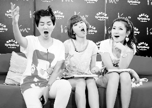 S.H.E和某網(wǎng)站合作的網(wǎng)路電臺(tái)將在10月17日播出最后一集,日前三人抽空去進(jìn)行此集的節(jié)目錄影。Ella綁了個(gè)搞笑小辮子;Hebe則一改酷勁,頻在鏡頭前扮丑;Selina就首度放下飄逸長發(fā)耍性感。近來頻頻在節(jié)目中“語不驚人死不休”的S.H.E,在末集都不改“話癆”風(fēng)格,Ella大爆自己有腸躁癥,出門在外常常是走到哪拉到哪;有潔癖的Hebe正好相反,擔(dān)心外面的廁所不干凈,總是憋到回家才“解放”。