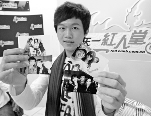 陳琪在紅人堂展示他與金莎等明星的合影。見習記者 王鵬 攝