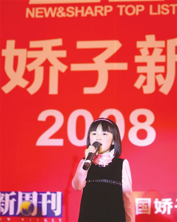 昨晚的頒獎典禮一開始,一陣天籟般的童聲就從會場傳來,一個留著娃娃頭的可愛小姑娘唱著《歌唱祖國》登上了舞臺。她就是奧運(yùn)會開幕式那首《歌唱祖國》的演唱者楊沛宜。楊沛宜在這次中國嬌子新銳榜中獲得了“2008年最美的聲音”,巴蜀鬼才魏明倫成為了她的頒獎嘉賓。