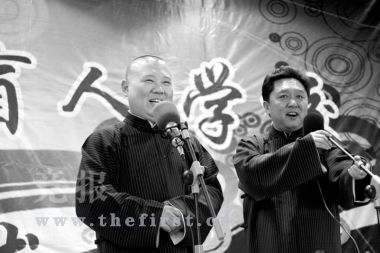 發(fā)表評論  從窗戶望出去,能看到山,這種景致讓許多身處都市的人心動。但是,窗子邊的孩子們卻看不到這種景致,他們是北京市盲人學校的盲童。昨日,這些看不到美麗風景的盲人孩子卻聽到了令人捧腹的相聲——郭德綱和搭檔于謙、師弟高峰等人帶來一場快意的演出。