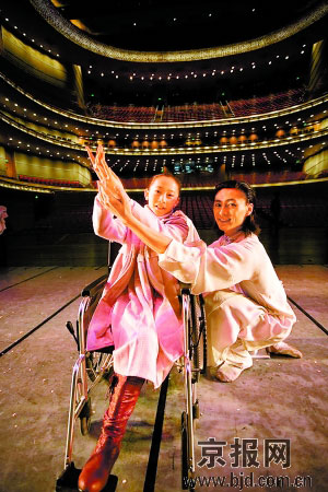 老朋友見面沒那么多客套話,呂萌直接就問到李月的學(xué)習情況,得知她馬上要考試了,呂萌還有些擔心李月沒有時間看自己的演出,李月爽快地表示沒問題,她已經(jīng)決定后天再來看《二泉映月》了。小姑娘雖然失去了一條腿,但她對舞蹈的熱愛沒有消失,昨晚特意向呂萌展示了她新學(xué)的舞蹈動作,呂萌馬上想到了一個動作和她配合,盡管臺下沒有觀眾,他們還是實現(xiàn)了在大劇院舞臺上的首次合作。呂萌說,殘奧會開幕式時李月剛做完手術(shù)不久,編排動作時要盡量繞開傷口,給當時的表演帶來很大困難。現(xiàn)在李月身體恢復(fù)差不多了,再合作時他也敢發(fā)力了。
