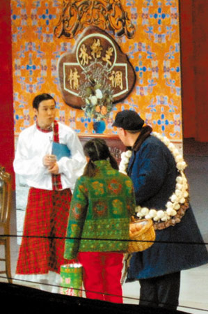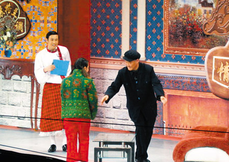 前日下午,春晚在中央電視臺演播廳進行了第二次彩排,趙本山的新小品《不差錢》終于亮相。經(jīng)歷了小品一稿的“自斃”后,趙本山完全拋棄了“黑土”路線,布景由農(nóng)村家庭,改為“鐵嶺市最豪華的飯店”———他將在這里為孫女毛毛上星光大道的事情宴請畢福劍,菜肴是他身上掛著的蔥、蒜,著“蘇格蘭裙裝”的小沈陽做侍應(yīng)生,故事由此展開。