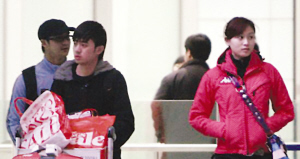 昨日清晨,田亮與葉一茜迎著瑞雪從新加坡飛返北京。大約7點左右,兩人一前一后走出關(guān)口,似乎刻意保持距離。不知此次兩人赴國外度假是否慶祝情人節(jié),但身著一件紅色喜慶外套的葉一茜,臉上絲毫看不出旅途的疲憊。由于雨雪的關(guān)系,他們乘坐的航班提前抵達。兩人在機場大廳稍作停留并不時耳語。已經(jīng)當(dāng)了爸爸的田亮對妻子葉一茜疼愛有加,全程都保持微笑。 小文