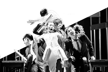 演員們除了臺詞對白,個個都還得客串“百老匯音樂劇演員”,一會兒推著辦公桌“噼里啪啦”跳起踢踏舞,一會兒高唱原創(chuàng)歌曲《Money,Money,Money》。更絕的是表現(xiàn)公司裝修的一幕,姚晨和一幫“裝修工人”揮著錘子、鏟子,直接就在一堆廢銅爛鐵上現(xiàn)場表演起打擊樂。