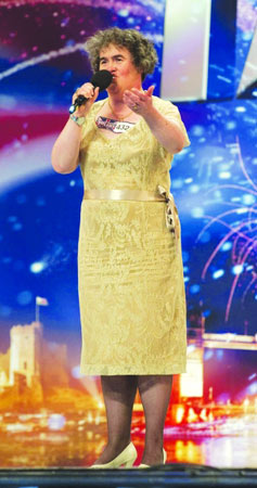4月11日,沒有接受過任何聲樂訓(xùn)練的蘇珊走上了舞臺(tái)。聚光燈下,當(dāng)身材肥胖的她告訴現(xiàn)場所有人她的夢(mèng)想是成為伊蓮·佩姬(英國音樂劇女神)時(shí),包括評(píng)委在內(nèi)的所有人都狂笑不已。但當(dāng)她一開口之后,眼神立即變得柔情萬種,歌聲中具備了驚人的爆發(fā)力與磁性……從那時(shí)起,先前的笑聲戛然而止,現(xiàn)場除了掌聲便是尖叫!一曲唱罷,觀眾們紛紛起立熱烈鼓掌,幾個(gè)歲數(shù)很大的觀眾偷偷用手擦去感動(dòng)的眼淚。評(píng)委之一的西蒙驚訝得張大了嘴巴;評(píng)委皮爾斯·摩根更直呼:“現(xiàn)在沒人笑你了,你的表演震撼、無與倫比!而你更是我們這個(gè)節(jié)目開辦三年來最大的驚喜!”