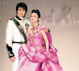 昨天的安德烈·金時(shí)裝秀,堪稱是一場唯美的視覺盛宴。在漫天飛雪中,張娜拉與8位模特身穿猶如百花綻放般五彩紛呈的禮服亮相,獻(xiàn)上了帶有濃濃春意的“春裝秀”。隨后,張娜拉攜手金俊分別身披晚禮服、宮廷禮服以及公主和王子服等8套禮服一次次走上秀臺。