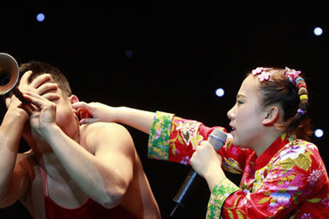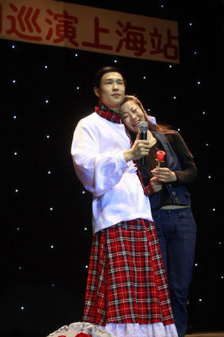 中新網(wǎng)4月27日電 《劉老根大舞臺(tái)》小沈陽(yáng)笑轉(zhuǎn)2009,全國(guó)巡演上海站昨晚(26日)在上海大舞臺(tái)(上海體育館)拉開序幕,王金龍和毛毛(丫蛋)夫婦同臺(tái)獻(xiàn)藝,毛毛上演了野蠻老婆的戲碼。丫蛋以野蠻的招數(shù)著稱,這次剛剛新婚不久的夫妻二人,給上海的觀眾朋友們來(lái)了個(gè)以外驚喜。觀眾的歡呼聲讓整個(gè)體育館達(dá)到了高潮。