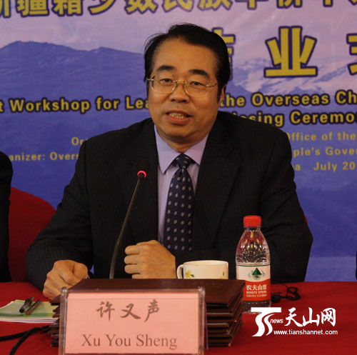 7月24日上午,首期新疆籍少數(shù)民族華僑華人社團(tuán)負(fù)責(zé)人研習(xí)班結(jié)業(yè)式在烏魯木齊舉行。國僑辦副主任許又聲出席結(jié)業(yè)式并講話。自治區(qū)副主席胡偉出席結(jié)業(yè)式并致辭。