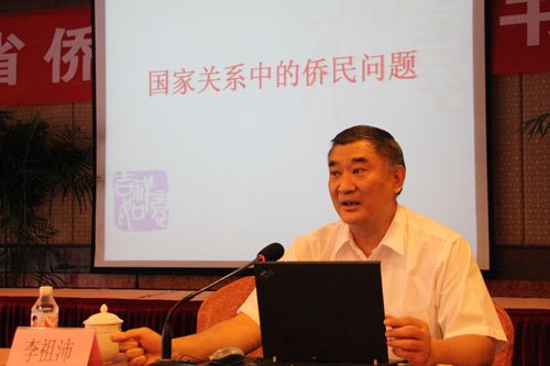 李祖沛就《國際關(guān)系中的僑民問題》向與會人員作了深刻闡述。他對僑民的產(chǎn)生、形成和身份界定作了講解,把國家關(guān)系對僑民的影響作了闡述,重點講解了僑民對雙邊關(guān)系、僑居國、祖(籍)國的影響。通過列舉大量事例,結(jié)合僑聯(lián)干部工作中遇到的許多問題,李祖沛作了詳細(xì)講解。針對僑民的特殊性和當(dāng)前存在的現(xiàn)實問題,他也作了剖析,并在有關(guān)國家的僑民工作中也提到了一些具體做法和建議。