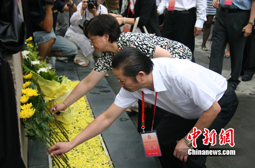 參加祭奠活動的有中國僑聯(lián)常委、部分省市僑聯(lián)領導、為新北川中學捐資僑胞、新北川中學建設者等,他們自發(fā)排成一列在遇難者公墓前獻上菊花,并深深鞠了三個躬。