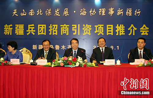 新疆生產(chǎn)建設(shè)兵團(tuán)副司令員劉新齊向參加活動(dòng)的海外僑領(lǐng)介紹了新疆生產(chǎn)建設(shè)兵團(tuán)的歷史,兵團(tuán)副政委雪克來提·扎克爾介紹了新疆兵團(tuán)的經(jīng)濟(jì)社會發(fā)展?fàn)顩r。據(jù)介紹,50多年來,新疆兵團(tuán)依托大農(nóng)業(yè)優(yōu)勢和新疆礦產(chǎn)資源優(yōu)勢,大力建設(shè)農(nóng)副產(chǎn)品生產(chǎn)加工基地和優(yōu)勢礦產(chǎn)資源開發(fā)利用基地,大力實(shí)施優(yōu)勢資源轉(zhuǎn)換、開放帶動(dòng)、科教興兵團(tuán)和人才強(qiáng)兵團(tuán),總體實(shí)力明顯增強(qiáng)。2009年,新疆兵團(tuán)實(shí)現(xiàn)生產(chǎn)總值610.69億元人民幣,人均生產(chǎn)總值達(dá)到23734元。