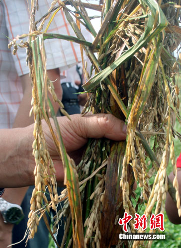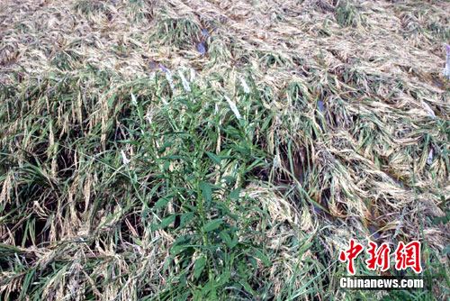 記者在當(dāng)?shù)厮,大片成熟晚稻依然泡在水中。拔起一株看見谷穗已?jīng)發(fā)芽。隨行的中國(guó)熱帶科學(xué)院專家分析說(shuō),這樣的稻谷人已無(wú)法食用,唯有趕緊翻地準(zhǔn)備下一季生產(chǎn)。
