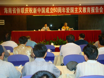 中新網9月9日電 9月2日,海南省僑聯(lián)在?谑忻廊A荷泰酒店舉辦“慶祝新中國成立60周年愛國主義教育報告會”,報告會由海南省僑聯(lián)黨組書記、主席何云霞主持,邀請海南省委黨校(省行政學院、省社會主義學院)黨委副書記、省行政學院院長、省委黨校副校長廖遜主講,省僑聯(lián)、省僑聯(lián)下屬社團、?诘貐^(qū)僑聯(lián)干部50多人參會。(海南僑聯(lián))