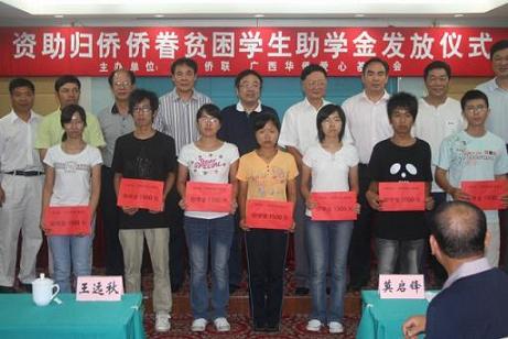 中新網(wǎng)9月21日電 9月15日,廣西僑聯(lián)、廣西華僑愛(ài)心基金會(huì)舉行資助歸僑僑眷貧困學(xué)生助學(xué)金發(fā)放儀式,廣西自治區(qū)歸僑僑眷貧困大學(xué)生、高中生214名獲得資助,助學(xué)金總金額30.1萬(wàn)元。這是廣西自治區(qū)僑聯(lián)連續(xù)資助全區(qū)歸僑僑眷貧困生的第三年,也是廣西華僑愛(ài)心基金會(huì)資助全廣西自治區(qū)歸僑僑眷貧困生的第一年。