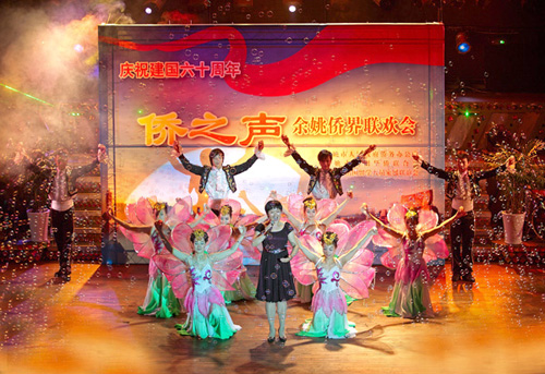 中新網(wǎng)9月29日電 明月迎中秋,團(tuán)圓慶國(guó)慶。9月27日,寧波余姚市僑務(wù)系統(tǒng)首次舉行了具有“僑”之特色的文娛活動(dòng)——“僑之聲”余姚市僑界慶祝新中國(guó)成立60周年聯(lián)歡會(huì)。市政協(xié)副主席、市委統(tǒng)戰(zhàn)部部長(zhǎng)葉文龍,市僑辦主任、僑聯(lián)主席黃孟丹等領(lǐng)導(dǎo)出席,全市僑界政協(xié)委員、僑聯(lián)委員以及部分歸僑僑眷、留學(xué)人員及其家屬、僑資僑屬企業(yè)家、基層僑務(wù)工作者,共計(jì)400余人共同歡度了節(jié)日的聚會(huì)。
