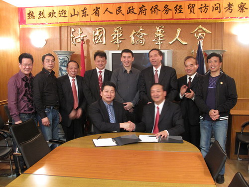 雙方一致同意,今后進(jìn)一步加強(qiáng)信息交流,互相支持,開(kāi)展實(shí)質(zhì)性合作。山東省海外交流協(xié)會(huì)副會(huì)長(zhǎng)史進(jìn)與華僑華人會(huì)會(huì)長(zhǎng)陳勝武在友好關(guān)系協(xié)議書(shū)上簽字。