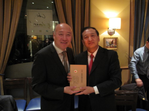 在法國(guó)華僑華人會(huì)會(huì)所,訪問(wèn)團(tuán)與華僑華人會(huì)會(huì)長(zhǎng)陳勝武等僑領(lǐng)進(jìn)行了座談,山東省僑辦副主任史進(jìn)對(duì)長(zhǎng)期以來(lái)華僑華人會(huì)對(duì)山東僑務(wù)工作的支持和經(jīng)濟(jì)發(fā)展的貢獻(xiàn)表示敬意和贊賞。