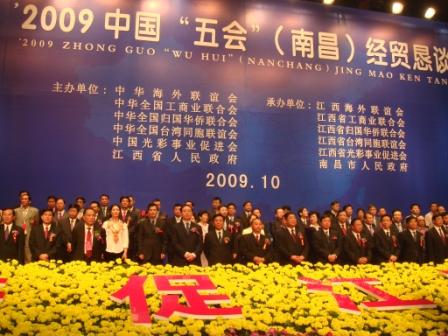 中新網(wǎng)11月4日電 據(jù)中國僑聯(lián)網(wǎng)站消息,10月28日上午,由中華海外聯(lián)誼會、中華全國工商業(yè)聯(lián)合會、中華全國歸國華僑聯(lián)合會、中華全國臺灣同胞聯(lián)誼會、中國光彩事業(yè)促進(jìn)會和江西省人民政府聯(lián)合主辦,以“‘五會’共架同胞心橋,八方同促江西崛起”為主題的2009中國“五會”(南昌)經(jīng)貿(mào)懇談會在南昌市紅谷灘會議中心開幕。中央統(tǒng)戰(zhàn)部副部長、全國工商聯(lián)黨組書記全哲洙,全國臺聯(lián)會長梁國揚(yáng),中國僑聯(lián)副主席王永樂以及江西省有關(guān)領(lǐng)導(dǎo)出席開幕式。