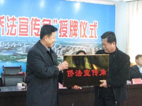 會(huì)議對(duì)全市僑法宣傳工作進(jìn)行了部署,并向市中區(qū)榮華里社區(qū)和光明園社區(qū)進(jìn)行了“全國(guó)僑務(wù)系統(tǒng)五五普法僑法宣傳角”授牌。