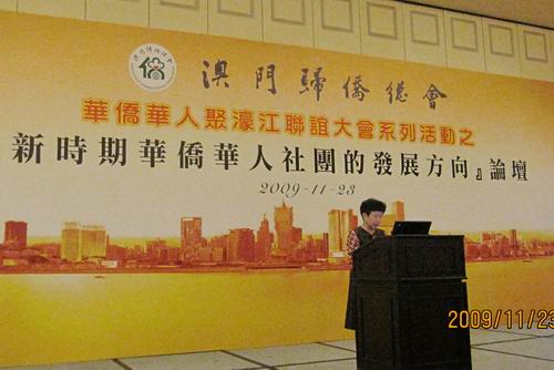 中新網(wǎng)12月2日電 據(jù)江蘇省僑聯(lián)消息,11月23日至24日,以江蘇省僑聯(lián)主席郁美蘭為團長的江蘇省僑聯(lián)代表團一行3人出席了在澳門舉行的“2009華僑華人聚濠江聯(lián)誼大會”。