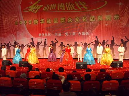 中新網(wǎng)12月2日電 據(jù)上海市僑辦消息,11月25日,為宣傳世博、了解世博、走進世博,進一步營造社區(qū)迎世博的熱烈氛圍,進一步構(gòu)建健康、和諧的城區(qū)環(huán)境和城區(qū)活力,上海市長寧區(qū)新華社區(qū)在上海影城隆重舉辦了“舞動世博旋律”——2009新華社區(qū)群眾團隊展示活動。