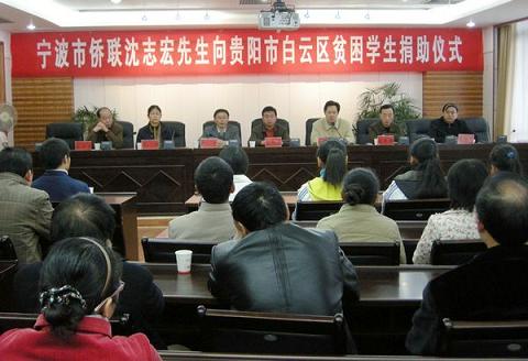 據(jù)悉,沈志宏系留學(xué)歸國人員,浙江前程投資股份有限公司董事長。當(dāng)他通過寧波市僑聯(lián)了解到貴陽市白云區(qū)有一部分品學(xué)兼優(yōu)的農(nóng)村高中生因家庭困難上不起學(xué)時(shí),沈先生當(dāng)即表示愿意出錢資助這些學(xué)生上學(xué)。他認(rèn)為,孩子是一個(gè)家庭的寄托,也是一個(gè)國家的未來,一個(gè)民族的希望。出一點(diǎn)錢,盡一點(diǎn)綿薄之力,能讓這些家庭經(jīng)濟(jì)困難的學(xué)生充分感受到社會(huì)的溫暖和關(guān)愛,讓他們不因貧困而跌倒在人生的起跑線上,是一個(gè)僑界企業(yè)家應(yīng)盡的社會(huì)責(zé)任。