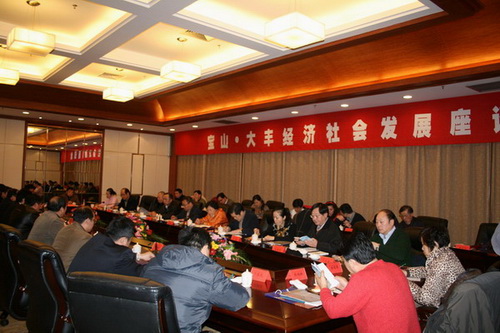 隨后,考察團一行與大豐市委、市政府進行了“寶山、大豐經濟社會發(fā)展座談會”。大豐市委書記倪峰等出席活動并向考察團介紹了大豐市、大豐工業(yè)園區(qū)、經濟開發(fā)區(qū)及大豐港的情況,誠摯邀請寶山臺資、僑資企業(yè)家到大豐創(chuàng)業(yè)發(fā)展。