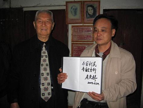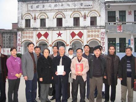 當(dāng)天下午,年近九旬的莊炎林,不顧旅途的疲勞,在梧州市僑聯(lián)主席鐘小欣、蒼梧縣統(tǒng)戰(zhàn)部部長李燕芬等領(lǐng)導(dǎo)的陪同下,來到蒼梧縣石橋鎮(zhèn)中心小學(xué)考察。其中心小學(xué)是莊炎林先生在抗日戰(zhàn)爭期間,以教師身份掩護開展地下工作的地方。今日重游故地,莊炎林先生格外激動,并向陪同人員講起了當(dāng)年的工作情景。隨后莊炎林先生一邊聽取該學(xué)校的情況,一邊參觀當(dāng)年曾用過的工作室,并在留言簿上題詞:為國利民,奉獻力行。(蔡光天)
