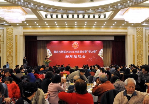 中新網1月20日電 據(jù)青島市僑聯(lián)消息,1月16日下午,山東省青島市僑聯(lián)在黃海飯店隆重舉辦了2009年度表彰會暨“僑之情”新年聯(lián)歡會。來自青島市各條戰(zhàn)線的400余名歸僑僑眷代表、駐青海外僑胞和僑聯(lián)工作者歡聚一堂,表彰先進,暢敘友情,喜迎新春。