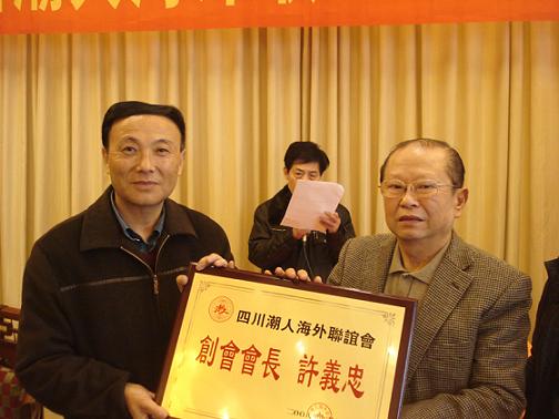 本次大會(huì)由潮人會(huì)顧問張仲朝主持,創(chuàng)會(huì)會(huì)長(zhǎng)許義忠,名譽(yù)會(huì)長(zhǎng)吳名智、張居平,新任會(huì)長(zhǎng)陳湖南和其他理事、會(huì)員150余人參會(huì)。會(huì)上,創(chuàng)會(huì)會(huì)長(zhǎng)許義忠作了《十三年工作回顧》的報(bào)告,會(huì)長(zhǎng)陳湖南致《新年辭》,宣讀了第三屆榮譽(yù)職務(wù)和領(lǐng)導(dǎo)成員名單。吳振西為創(chuàng)會(huì)會(huì)長(zhǎng)許義忠先生頒發(fā)了榮譽(yù)牌。