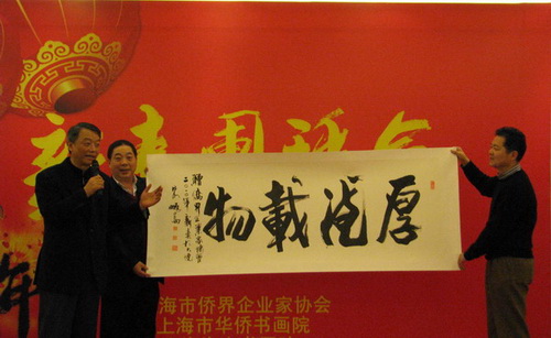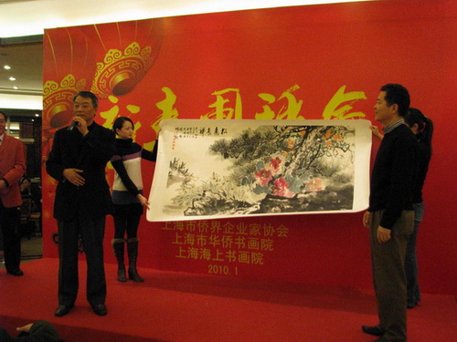 朱鵬高向上海市僑界企業(yè)家協(xié)會(huì)贈(zèng)送書(shū)、畫(huà)各一幅,并為團(tuán)拜會(huì)活動(dòng)提供獎(jiǎng)品的10位企業(yè)家贈(zèng)送了珍貴禮品。團(tuán)拜會(huì)節(jié)日氣氛濃烈,期間進(jìn)行了精彩的文藝演出及抽獎(jiǎng)活動(dòng)。