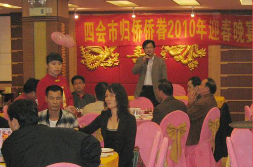 晚宴開始前,在歡樂祥和熱烈的氣氛中,四會(huì)市僑聯(lián)主席雷森榮作了講話。他首先總結(jié)回顧了去年的工作。他說,2009年四會(huì)市僑聯(lián)在市委、市政府的正確領(lǐng)導(dǎo)和上級(jí)僑聯(lián)的關(guān)心指導(dǎo)下,在有關(guān)部門的支持配合下,通過全體僑聯(lián)工作者和歸僑僑眷的共同努力,僑聯(lián)工作取得了喜人的成績:在全國僑聯(lián)“八代會(huì)”上,四會(huì)市僑聯(lián)榮獲“全國僑聯(lián)系統(tǒng)先進(jìn)基層組織”榮譽(yù)稱號(hào),僑眷張樹華榮獲“全國歸僑僑眷先進(jìn)個(gè)人”榮譽(yù)稱號(hào),在廣東省僑聯(lián)“九代會(huì)”上,東城街道僑聯(lián)被評(píng)為“廣東省僑聯(lián)系統(tǒng)先進(jìn)集體”,雷森榮被評(píng)為“廣東省僑聯(lián)系統(tǒng)先進(jìn)個(gè)人”,在肇慶市僑聯(lián)六屆五次全委會(huì)上,四會(huì)市僑聯(lián)被評(píng)為“2009年度肇慶市僑聯(lián)系統(tǒng)信息工作先進(jìn)集體”,分別受到表彰;圍繞中心、服務(wù)大局,成功引進(jìn)兩個(gè)僑資項(xiàng)目到四會(huì)投資落戶;積極參政議政,做好為僑服務(wù),維護(hù)僑益;大力拓展海內(nèi)外聯(lián)誼,密切聯(lián)系海外社團(tuán),加大做好華僑華人新生代的工作;加強(qiáng)信息報(bào)道工作和出版僑聯(lián)刊物,宣傳僑鄉(xiāng)優(yōu)秀文化,做好文化交流;認(rèn)真開展學(xué)習(xí)實(shí)踐科學(xué)發(fā)展觀活動(dòng)和“整作風(fēng)抓落實(shí)”專項(xiàng)活動(dòng),切實(shí)轉(zhuǎn)變工作作風(fēng),強(qiáng)化隊(duì)伍,夯實(shí)基層僑聯(lián)組織建設(shè)。僑聯(lián)各項(xiàng)工作得到了四會(huì)市委、市政府和上級(jí)僑聯(lián)的充分肯定。這些成績的取得有賴于四會(huì)市委、市政府的重視和關(guān)心,有賴于上級(jí)僑聯(lián)的指導(dǎo),有賴于有關(guān)部門的支持和各鎮(zhèn)(街道)僑聯(lián)的配合,有賴于全體僑聯(lián)工作者和歸僑僑眷的共同努力,雷森榮代表四會(huì)市僑聯(lián)表示衷心的感謝。