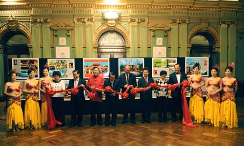 中新網(wǎng)2月21日電 2月20日,作為“文化中國·四海同春”系列文化活動的重要組成部分,《中華民族全家!穲D片展在悉尼市政廳大劇院展出。出席觀看“四海同春”大型慰僑文藝演出的2200位觀眾在演出前觀看了展覽圖片并紛紛拍照留念。國務(wù)院僑辦副主任趙陽出席圖片展剪彩儀式并講話。