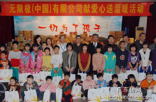 在活動上,廣州市僑辦副主任折志凌受朱爾武委托,代表省市區(qū)僑務(wù)部門作了熱情洋溢的致辭。香港李錦記健康產(chǎn)品集團(tuán)副總裁楊國晉先生代表無限極(中國)有限公司講話,詮釋了公司的慈善理念,介紹了此次活動的緣由和安排,表示將一如既往地履行社會慈善的企業(yè)責(zé)任,并向廣州市社會(兒童)福利院贈送價值133萬元的物資。廣州市社會(兒童)福利院徐久院長代表福利院感謝省市區(qū)三級僑辦的關(guān)心支持、感謝香港李錦記健康產(chǎn)品集團(tuán)、無限極(中國)有限公司的慈善關(guān)懷,代表孩子們感謝社會各界和慈善人士的關(guān)愛!