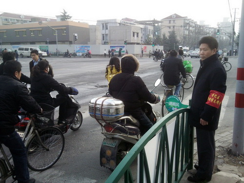 大家利用上班前的一小時時間,在道路情況較繁忙的路口協(xié)助交警維持交通秩序,以緩解早高峰的道路擁堵情況。
