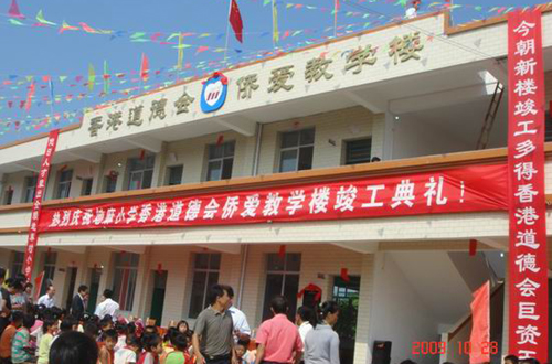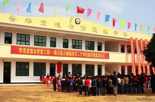 通過(guò)廣西自治區(qū)僑辦牽線搭橋,捐助支持廣西各項(xiàng)公益事業(yè)的僑社和慈善團(tuán)體中,香港道德會(huì)較為突出。香港道德會(huì)是香港有名的慈善機(jī)構(gòu),2009年先后在廣西欽州市欽南區(qū)新?tīng)I(yíng)村、賀州市八步區(qū)東南村、岑溪市地麻村、陸川縣清耳村等地,捐建4所小學(xué),捐贈(zèng)總額達(dá)172萬(wàn)元人民幣。這些受捐建的小學(xué)有個(gè)響亮的名字:“香港道德會(huì)僑愛(ài)教學(xué)樓”。